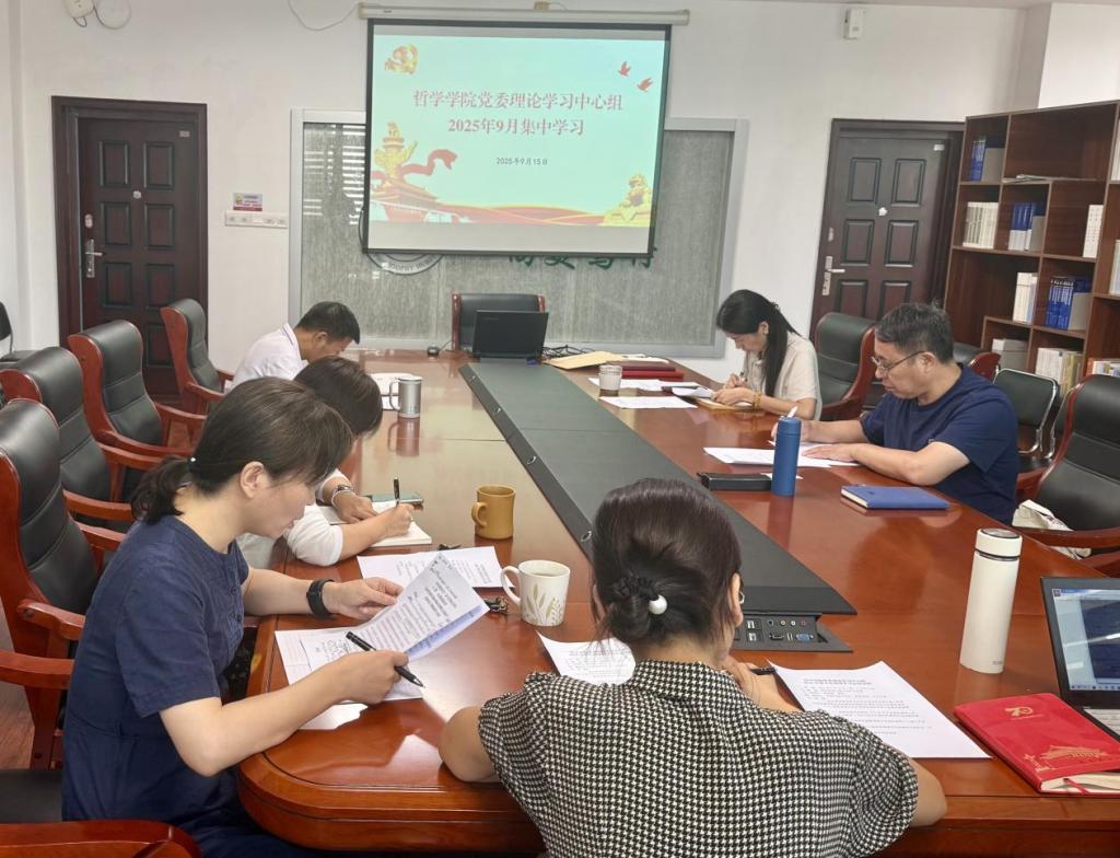 会上,院长周海春领学了习近平总书记在纪念中国人民抗日战争暨世界反法西斯战争胜利80周年大会上的重要讲话,并以和平进步、正义道德为主题进行了交流分享;院党委副书记、纪检委员王翠就上级印发的违反中央八项规定典型案例进行了通报,并就常抓不懈纠“四风”建设作了交流发言;副院长陶文佳领学了8月29日中央党的建设工作领导小组会议精神,并结合个人作为新提拔干部如何履职尽责作了交流分享;院党委委员倪霞领学了中共湖北省委十二届十次全体会议精神,并就哲学学科如何融入文化创新,推动湖北“支点”建设作了交流发言。与会人员围绕学习主题和内容,分别作了交流研讨。