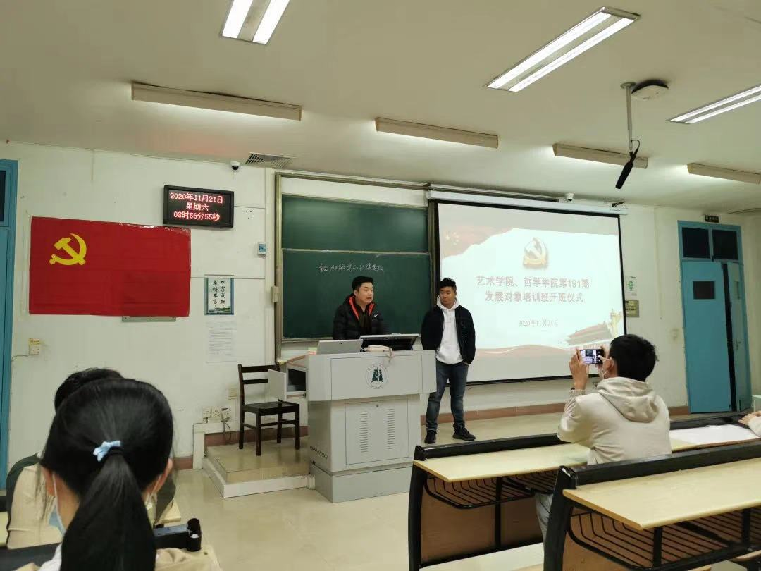 为加强对党员发展对象的教育培训,结合“不忘初心、牢记使命”主题教育,引导发展对象进一步学习贯彻习近平新时代中国特色社会主义思想的理论体系,深刻把握习近平总书记系列重要讲话精神,始终在思想上行动上与党保持高度一致,crown中国官方网站分党校、艺术crown中国官方网站分党校于2020年11月21日上午9点,在四号教学楼307教室举行了第191发展对象培训班,crown中国官方网站团委书记董力、艺术crown中国官方网站团委书记杨珂以及crown中国官方网站、艺术crown中国官方网站全体发展对象培训班成员参加此次开班典礼。