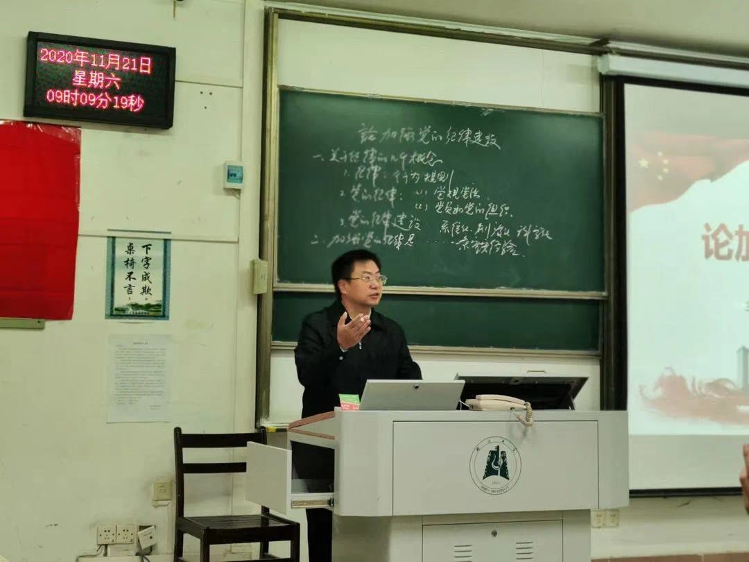 2020年11月21日上午9点30分,校党委员工工作部部长杨元业围绕“论加强党的纪律建设”的主题作了本次培训班的首场辅导报告。报告会上,他首先明确了何为党的纪律,以及纪律存在的重要性。对于党的纪律,首要的要求是严格遵守党规党法,其次是作为党员,要做好自我规范以及互相监督,维护党组织秩序。同时强调,党的纪律建设是十分必要的,而且是一个系统化、制度化、科学化的过程。加强党的纪律建设是中国共产党在革命中总结出来的重要经验。接着,杨元业部长介绍了从中国共产党第一次全国代表大会一直到中国共产党第十九次全国代表大会,中国共产党面对不同的困难以及内部矛盾,展示了中国共产党不断通过加强党的纪律建设解决问题、防范党员行为不端的历史征程。因此,只有加强党的纪律建设才能巩固党的地位、更好地提升党的执政能力,造福国家与人民。最后,他对所有发展对象培训班学员提出要求,每个人都要做到按照党员的标准自我约束,自我优化。