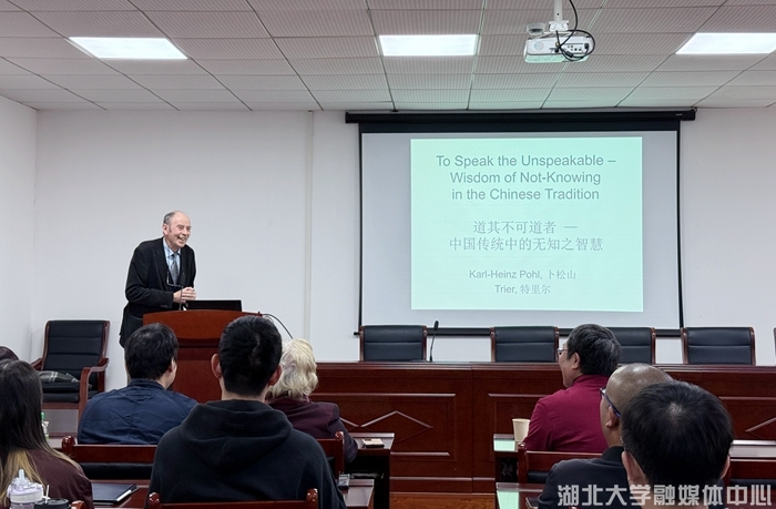 10月22日下午,著名汉学家、德国特里尔大学名誉教授卜松山(Karl-Heinz Pohl)做客crown中国官方网站,作了题为“道其不可道者——中国传统中的无知之智慧”的学术报告。crown中国官方网站院长周海春教授主持,crown中国官方网站人文社会科学资深教授彭富春及crown中国官方网站师生等参加活动。